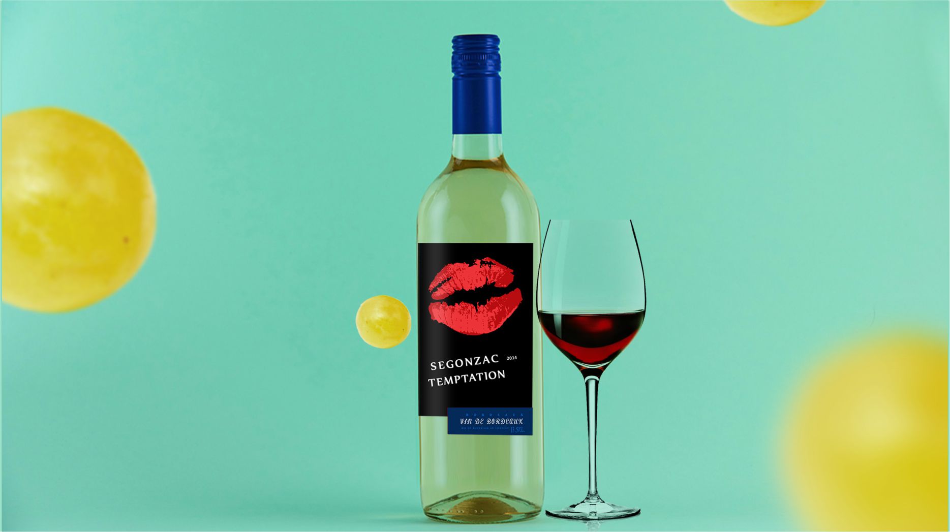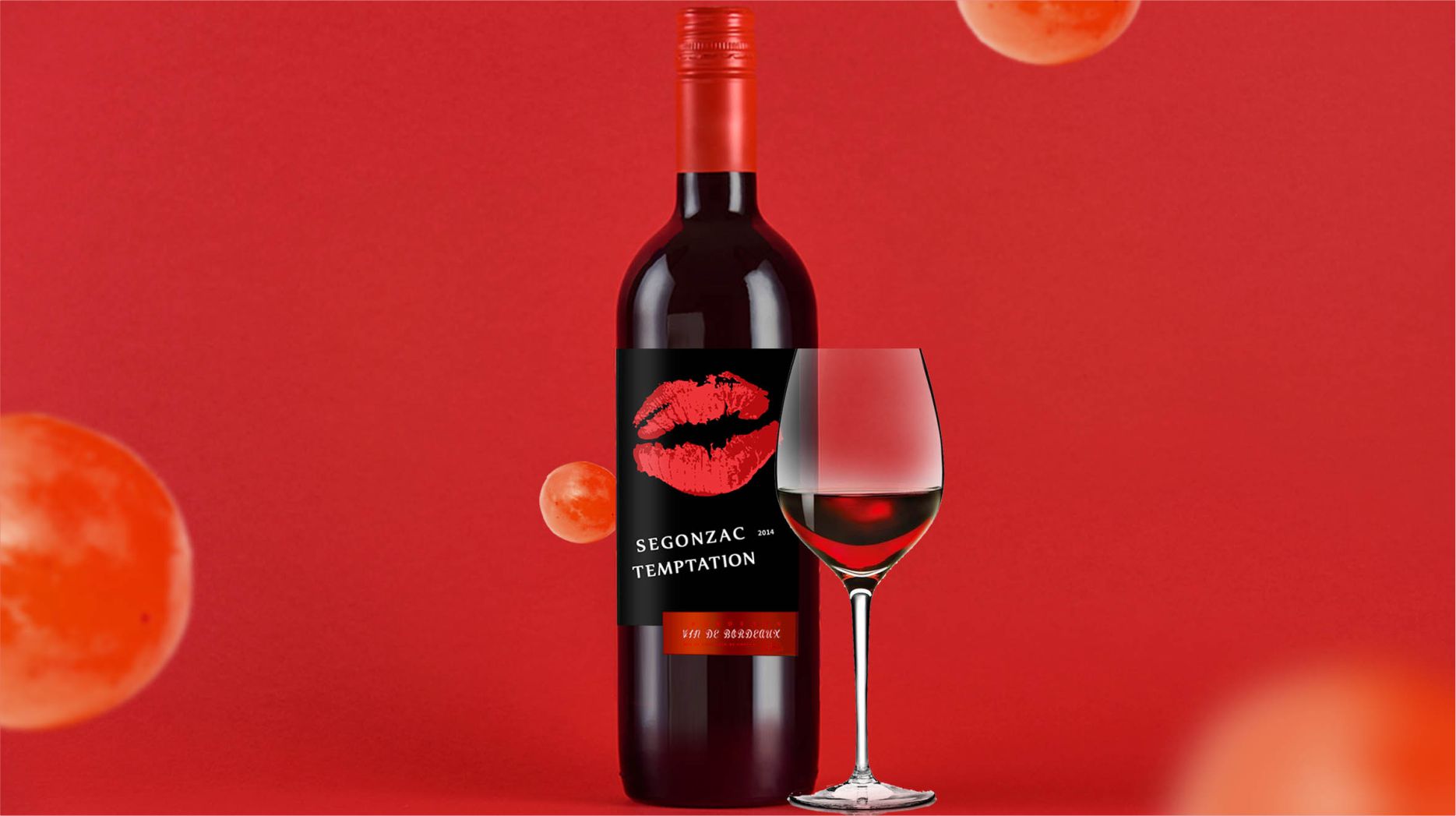 文字設(shè)計(jì):這款紅酒的文字設(shè)計(jì)比較簡(jiǎn)潔,只有品牌名稱和產(chǎn)品名稱兩部分。品牌名稱“SEGONZAC TEMPTATION”采用了襯線字體,顯得高雅和穩(wěn)重,與酒瓶的瓶蓋相呼應(yīng),體現(xiàn)了品牌的歷史和傳統(tǒng)。產(chǎn)品名稱則采用了白色的襯線字體,顯得現(xiàn)代和時(shí)尚,與酒瓶的白色標(biāo)簽相呼應(yīng),突出了產(chǎn)品的特色和差異化。文字的大小和位置也恰到好處,既不搶占紅唇的視覺焦點(diǎn),又能夠清晰地傳達(dá)出信息和意義。