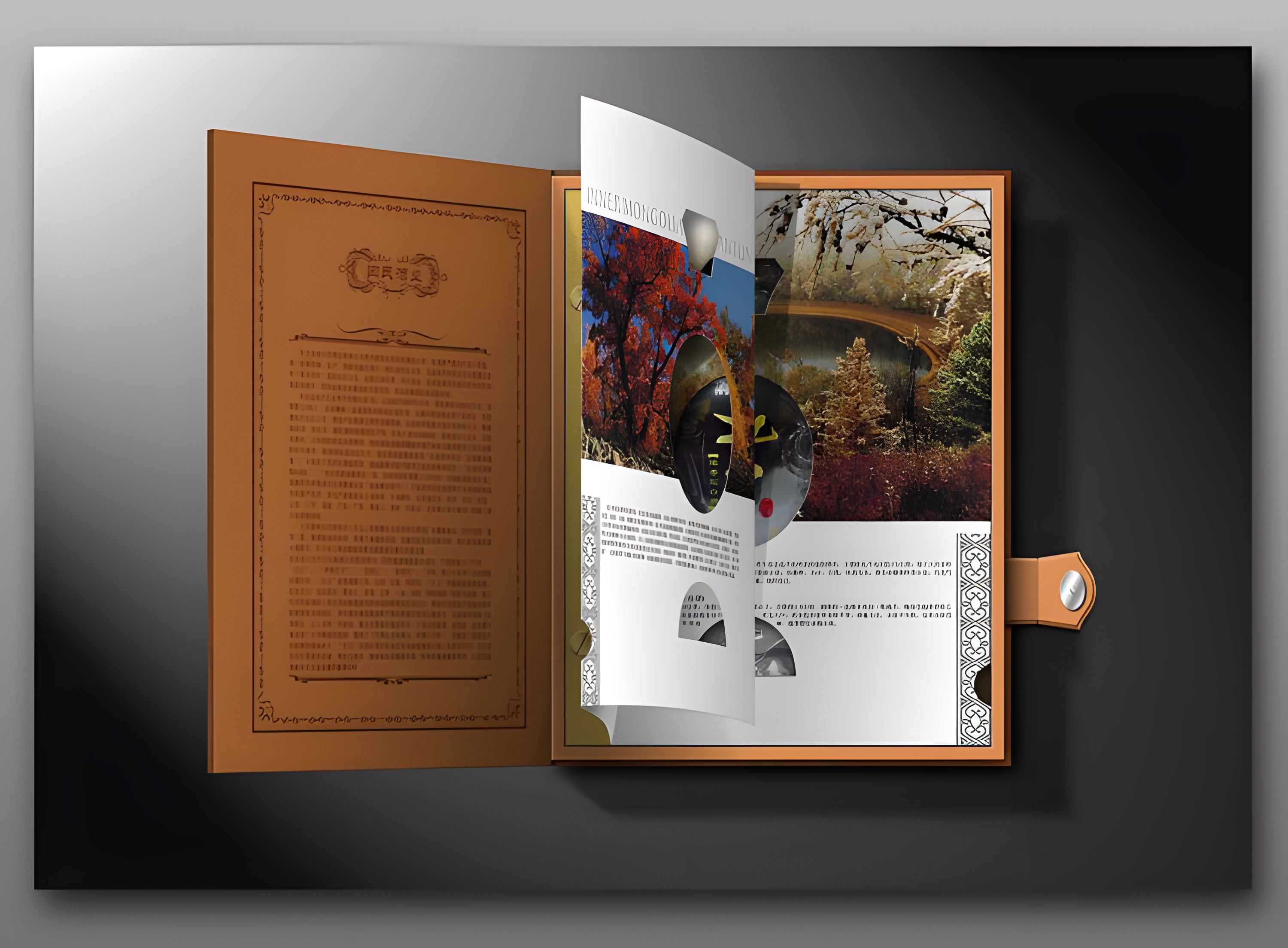 畫冊禮盒的設(shè)計(jì)風(fēng)格古樸而大氣,以黑色和金色為主色調(diào),營造出一種神秘和尊貴的氛圍。畫冊禮盒的尺寸和質(zhì)量都很適中,方便消費(fèi)者攜帶和閱讀。